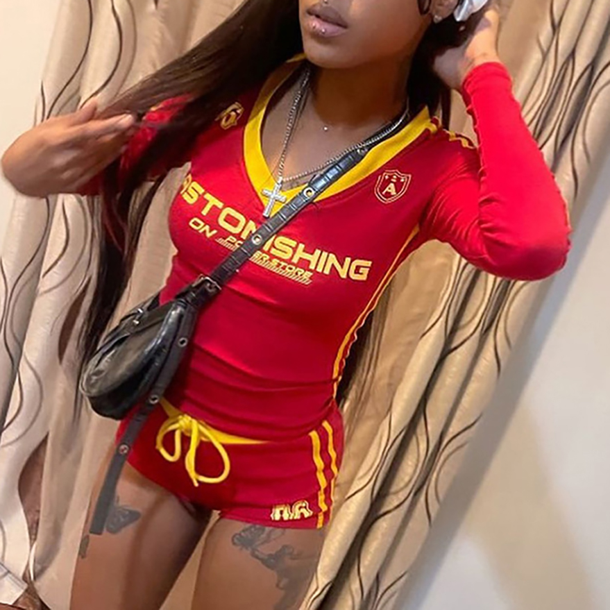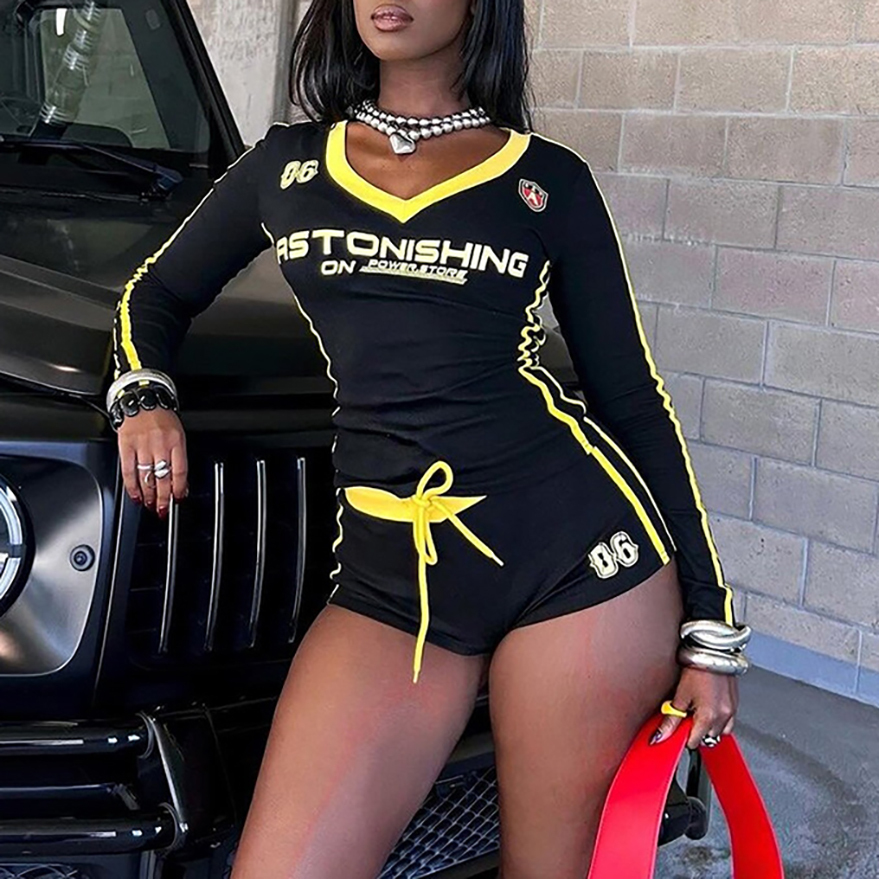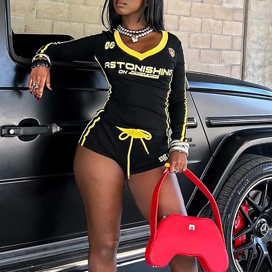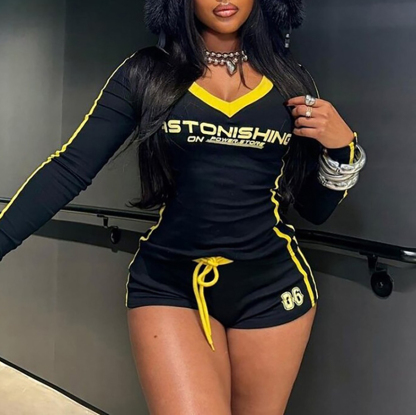 Printed Sexy V-Neck High Waist Leggings Set