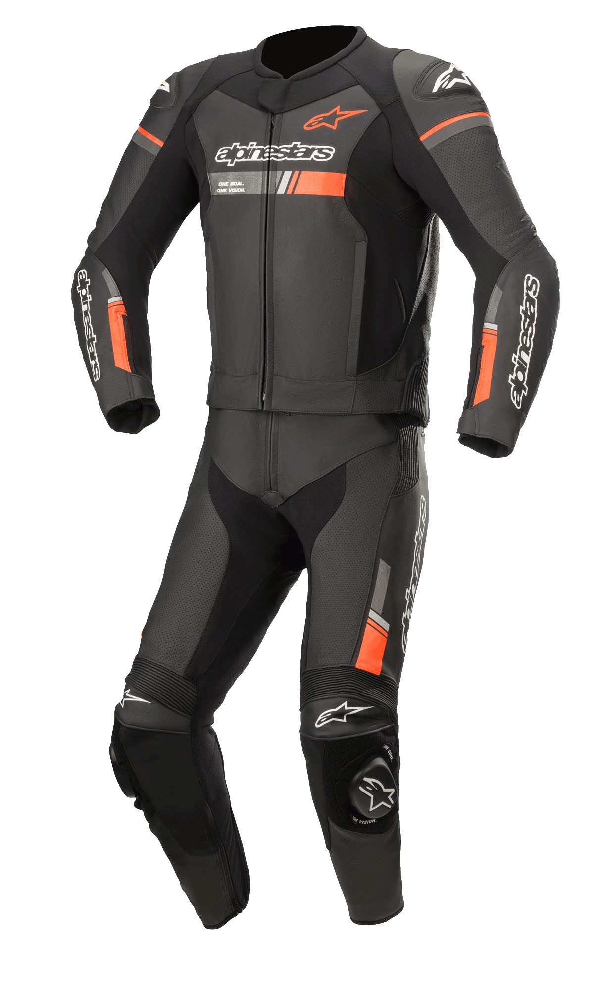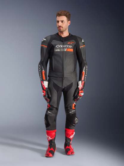 The GP Force Chaser 2PC Leather Suit is constructed from bovine leather for unsurpassed abrasion and tear resistance. Fully optimized for use with or without Tech-Air® 5, Alpinestars world leading electronic Airbag Safety System, the GP Force Chaser 2PC Leather Suit incorporates Alpinestars GP protectors for effective impact protection and external sliders at the joints for unparalleled abrasion resistance.