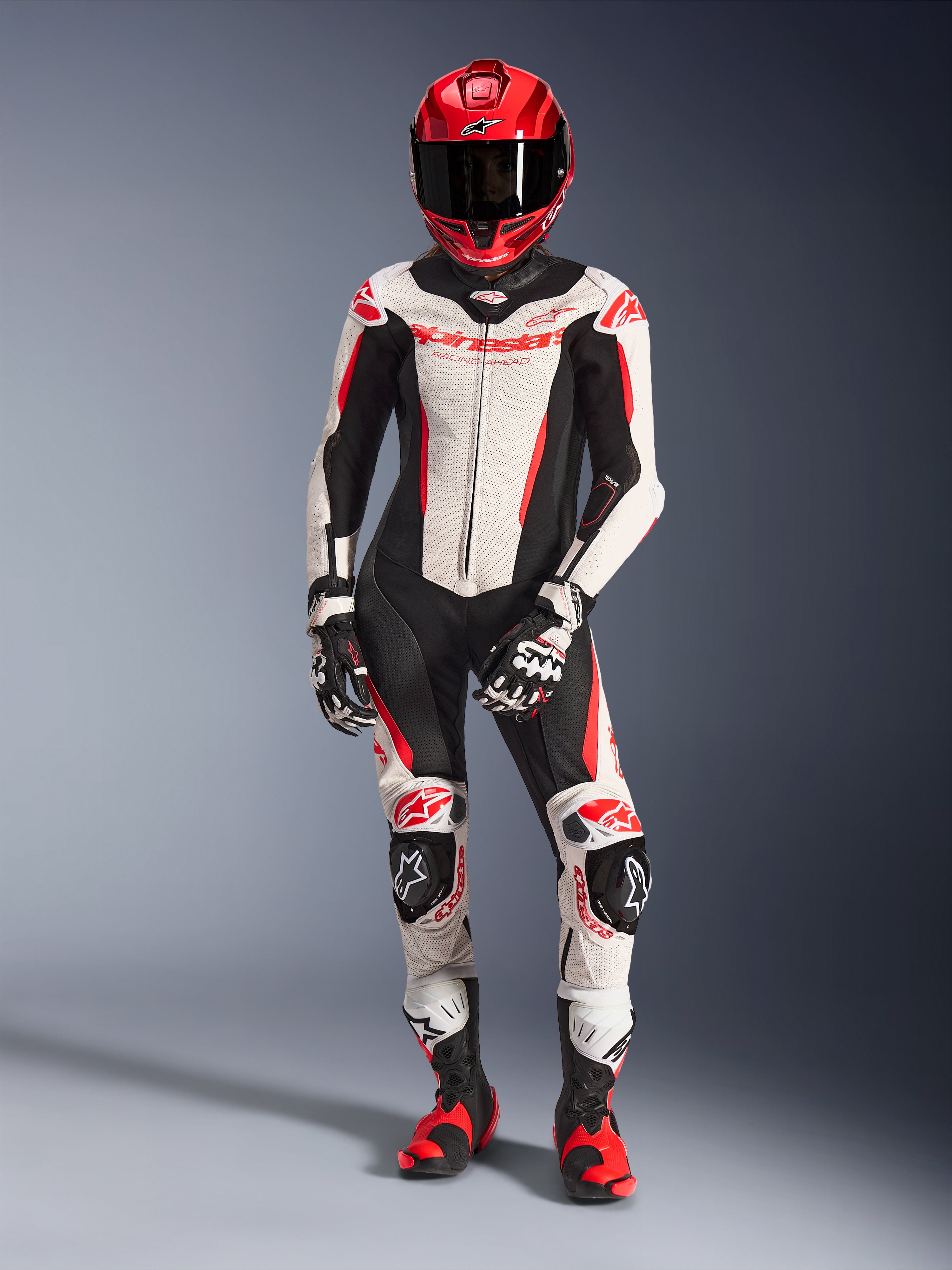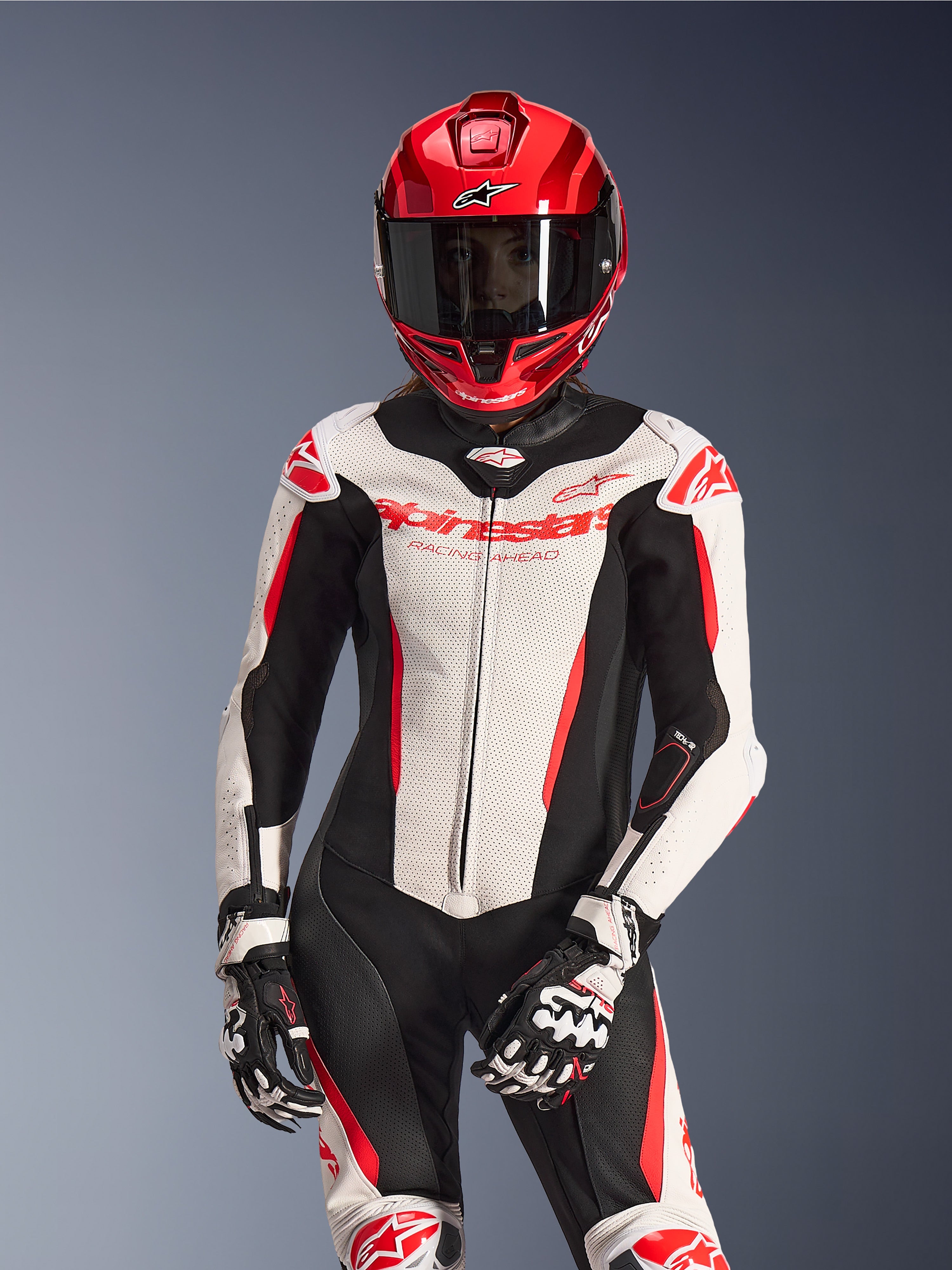 Engineered for women trackday riders and racers, the Stella GP-R7 1PC Leather Suit delivers race-proven performance with a women's optimized anatomical fit. Constructed from 1.3mm race-grade bovine leather and featuring CE Level 2 Nucleon PLASMA Pro armor, this AAA-certified suit integrates seamlessly with Tech-Air® racing airbag systems. Extensive perforations and aero hump ensure maximum ventilation and aerodynamic efficiency on track.
