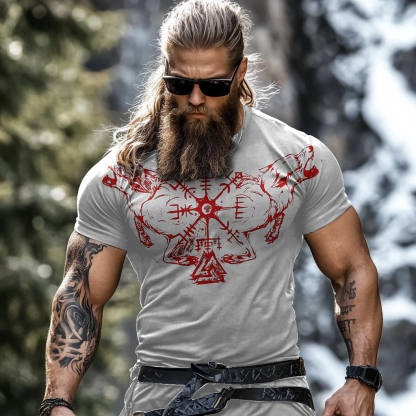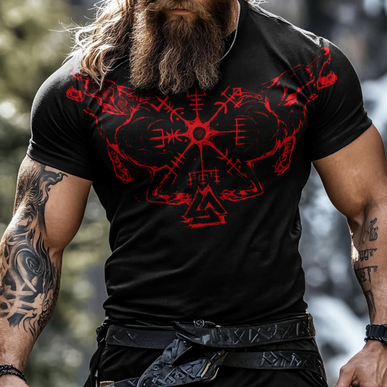 Men's Vintage Viking Rune Wolf Print T-shirt