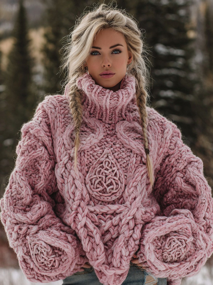 Women's Vintage Viking Rune Knit Jacquard Warm Turtleneck Sweater
