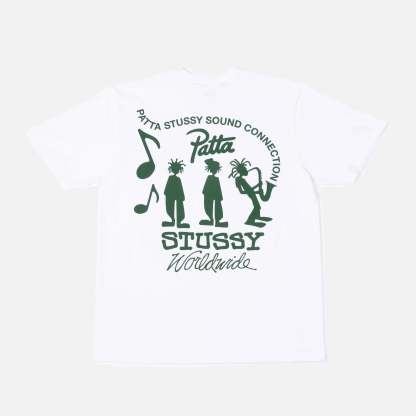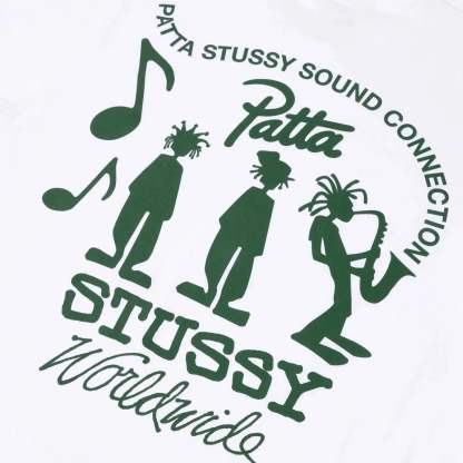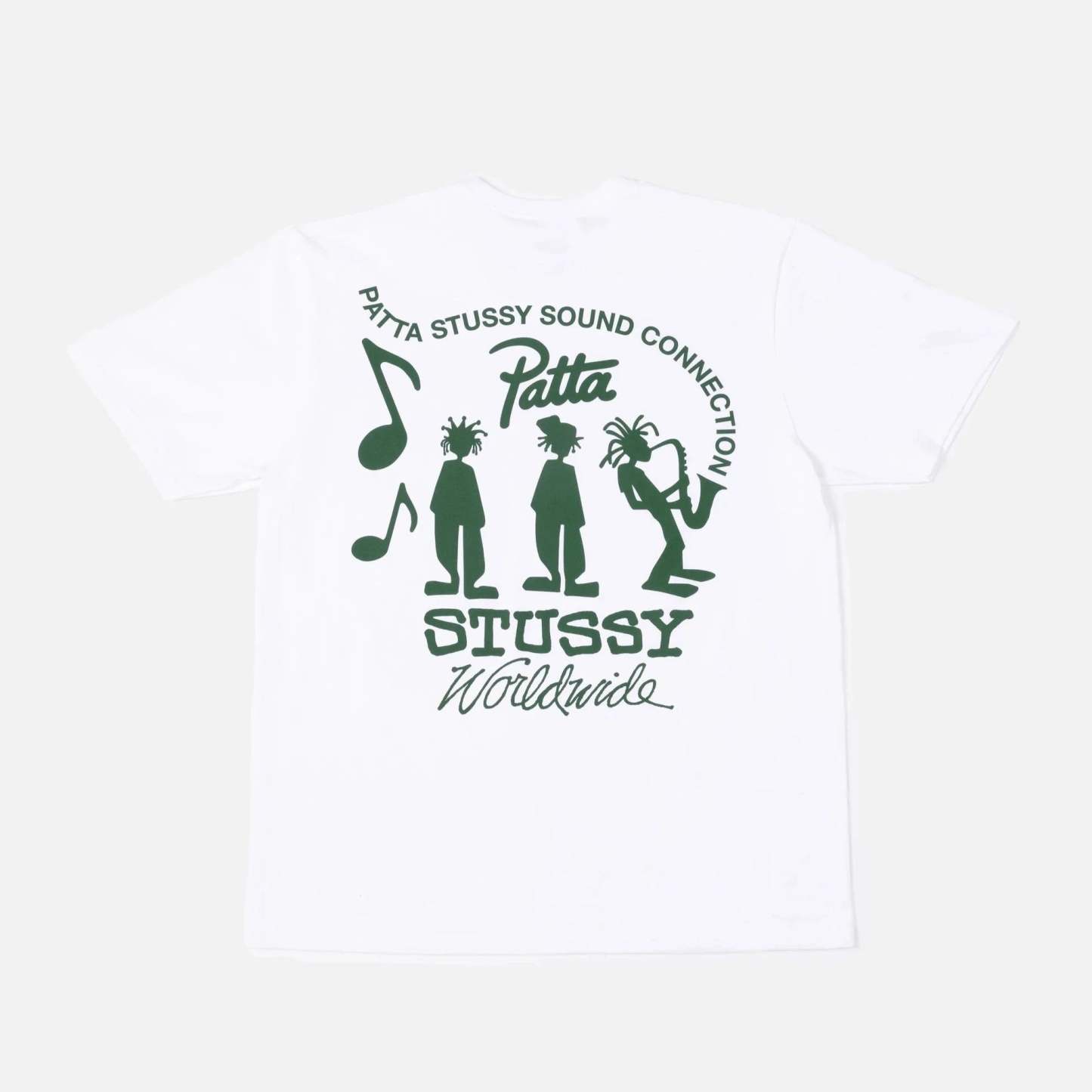 A T-shirt Patta x Stussy Sound Connection é confeccionada em algodão de 220gsm. Adornada com um logótipo co-branded Patta x Stussy serigrafado no lado esquerdo do peito e com um gráfico Sound Connection nas costas.