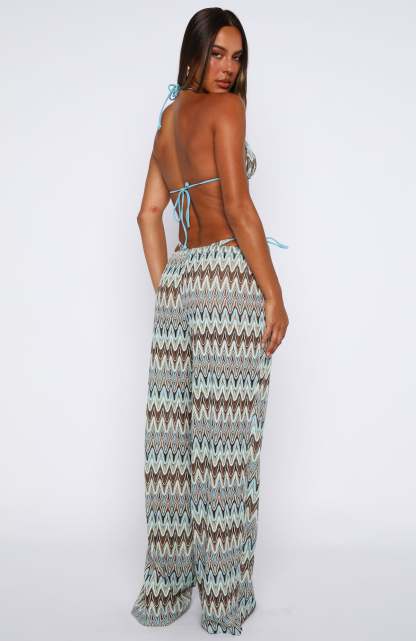 Your ultimate beach-ready essential has arrived! The Doll Behaviour Ocean Waves pants feature a thick elastic waistband, semi-sheer fabric, and a chic wide-leg silhouette for effortless style, unlined for lightweight comfort. Pair with the matching bikini in Ocean Waves and sandals.