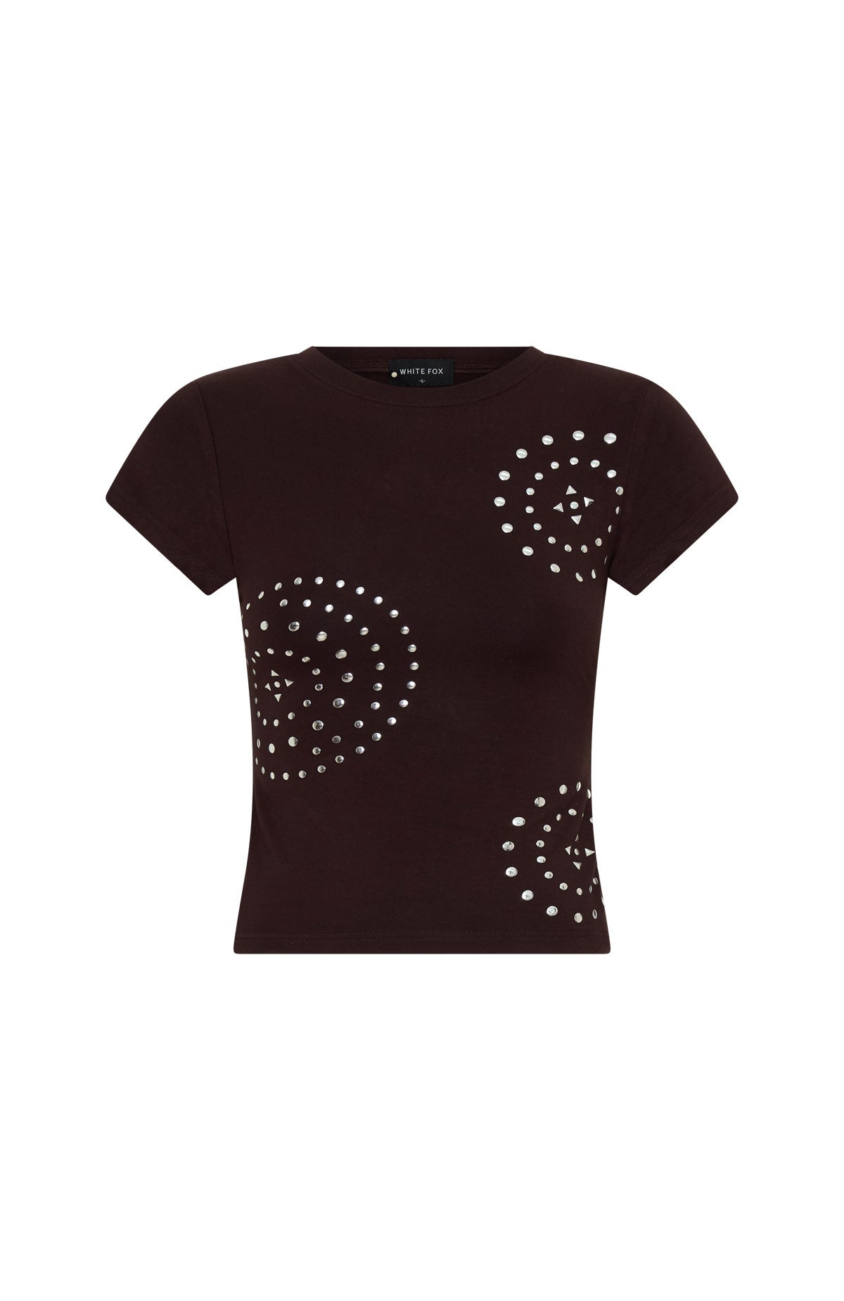 It Will Work Out Studded Top Dark Chocolate is giving festival energy. Featuring a classic crew neckline, short sleeves, high-stretch fabrication and fully lined fit with standout studded detail. Pair with the matching shorts, boots and your fave accessories for a carefree, electric outfit that captures that festival spirit.