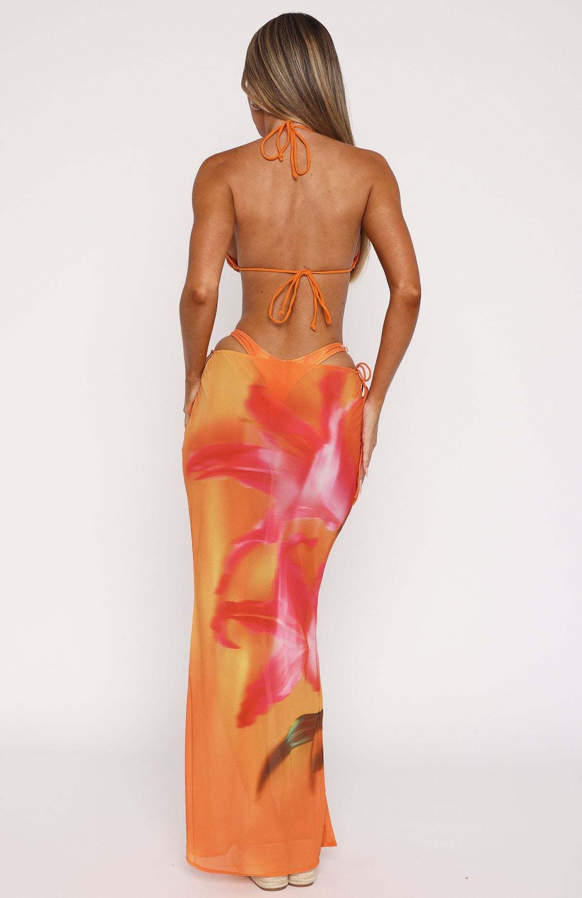Whether it's cocktail hour under the summer sun or an insta photoshoot, the Luminous Maxi Skirt Sunset Floral will soon be your go-to. Features a maxi length, cut-out waist design, side self-tie straps, unlined fabric and an easy slip on style. Pair with cool shades and gold accessories for a complete look.