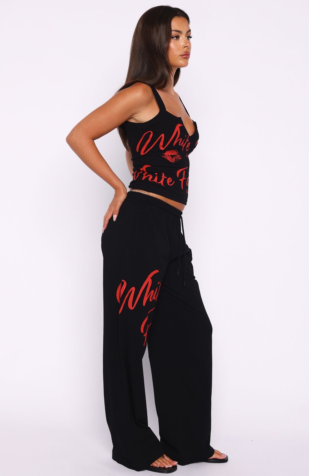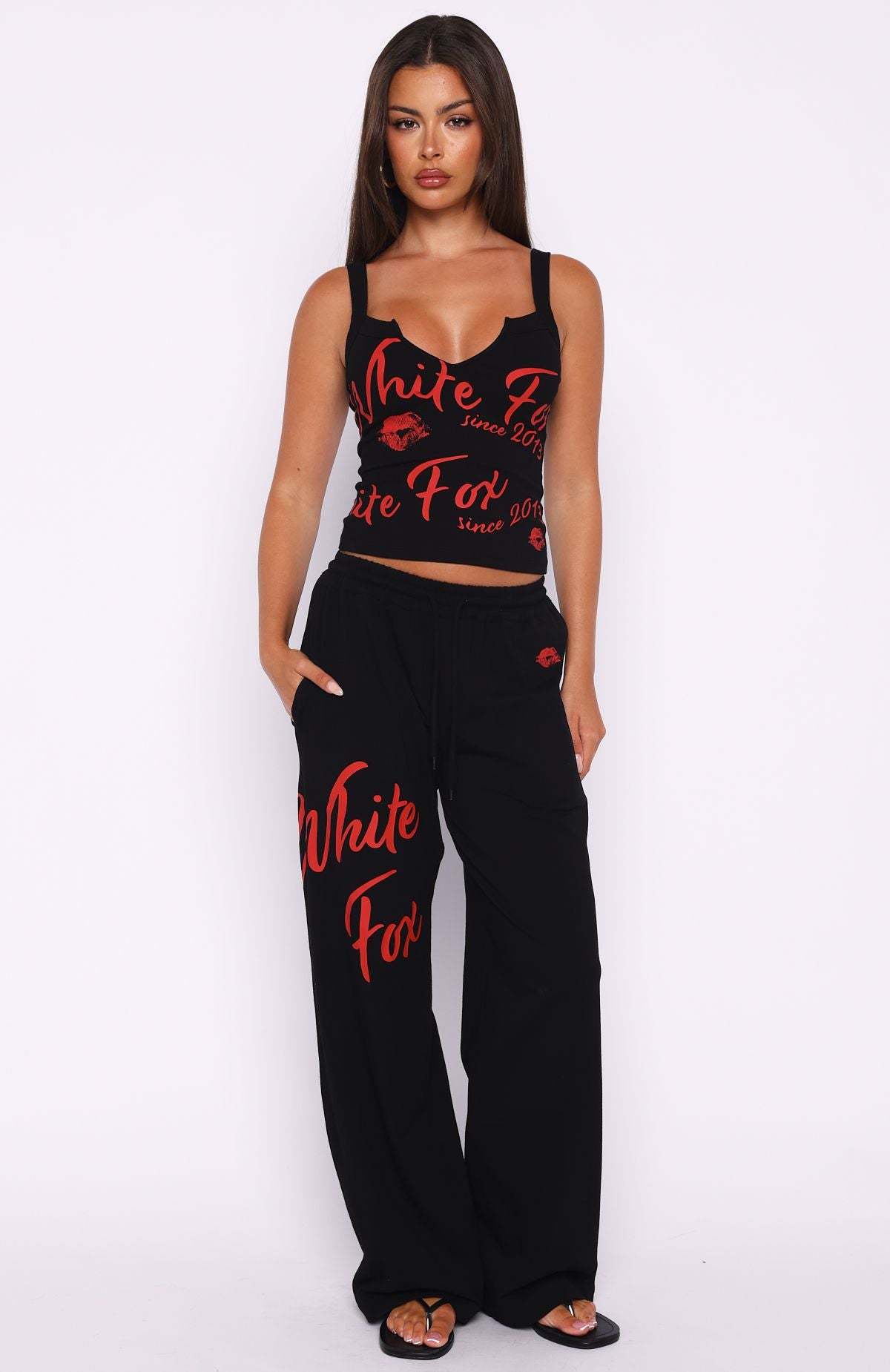 Comfort is an attitude, and this set embodies it. The Never Fades Track Pants Black feature a thick elasticated waistband, cursive White Fox text on leg side front, wide leg design and contrast colour detailing. Pair with the matching Never Fades Ribbed Tank Top Black for the cutest matching moment!