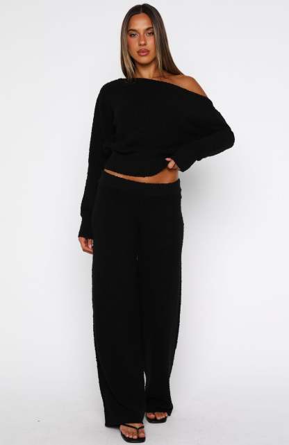 The Please Be Mine Knit Pants in Black are the ultimate cozy, laid-back piece for your wardrobe. Features thick elasticated waistband and stretch knit fabrication for an easy slip on design. Complete the look with the matching Please Be Mine Knit Sweater in Black for a fit we love in the colder seasons!