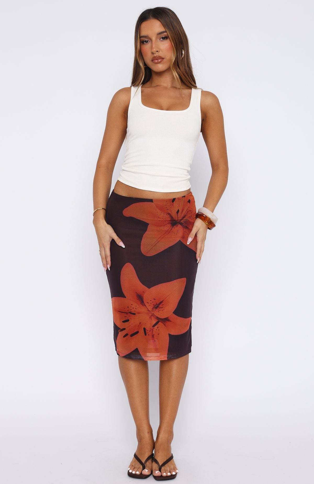 Live that summer bliss life in the Viva La Vida Midi Skirt in Tangerine Twist! Features thin elasticated waistband with subtle scolloped hem detailing and lined. Let the skirt speak for itself and pair with a basic tank and sandals for a look we love.