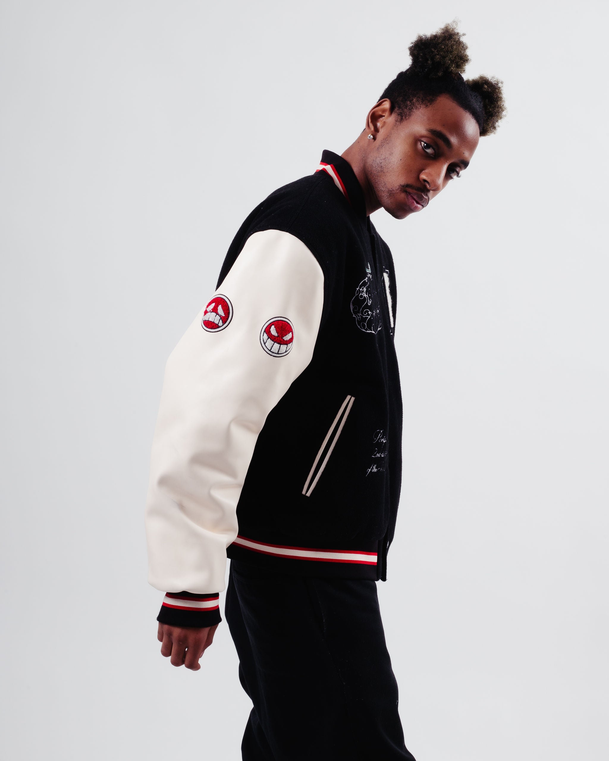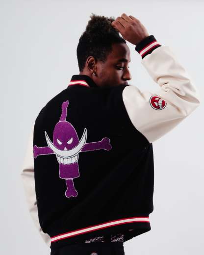 ACE is a letterman varsity jacket with symbols and motifs from Eichiro Oda's One Piece. Featuring the iconic Whitebeard jolly roger, an embroidered Mera Mera No Mi, and various other references of the 2nd commander of the Whitebeard Pirates!