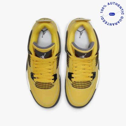 The Air Jordan 4 Retro 'Lightning' showcases a striking yellow upper complemented by black and white accents, creating a bold and eye-catching aesthetic. This sneaker features a premium suede construction and the iconic Jordan 4 silhouette, ensuring both style and comfort for everyday wear. With its vibrant colorway and classic design elements, the 'Lightning' edition captures the essence of the Jordan legacy, making it a must-have for fans and collectors alike.