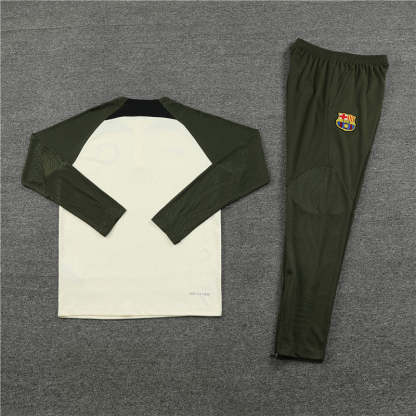 The FC Barcelona Military Green and White Tracksuit delivers a bold, modern look with a strong athletic edge. Crafted from lightweight, breathable fabric, it ensures excellent comfort for both training and everyday wear. The military green base is perfectly balanced with clean white accents for a powerful, stylish contrast. With a sleek fit and durable construction, this tracksuit is built for performance and street-ready fashion.