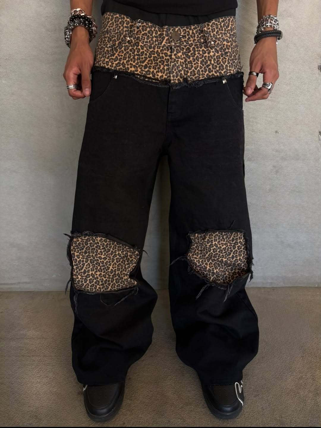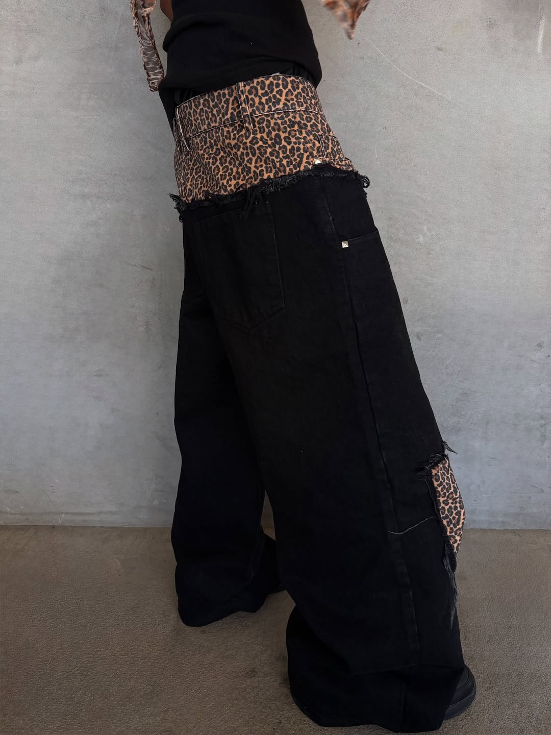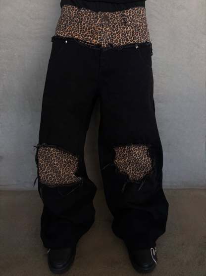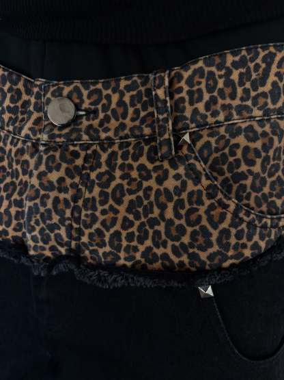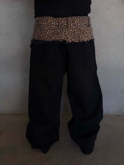 DOUBLE WAIST CHEETAH DENIM