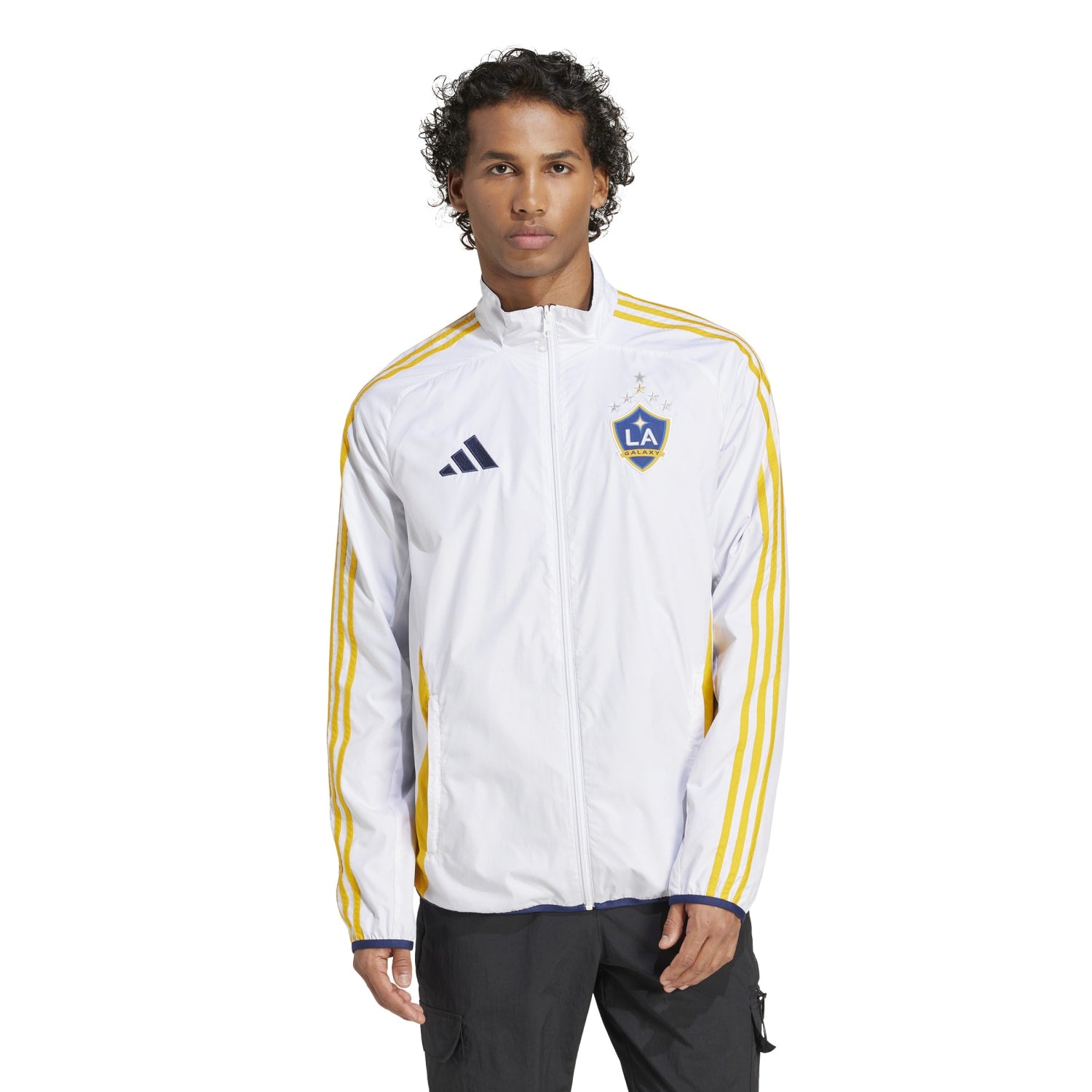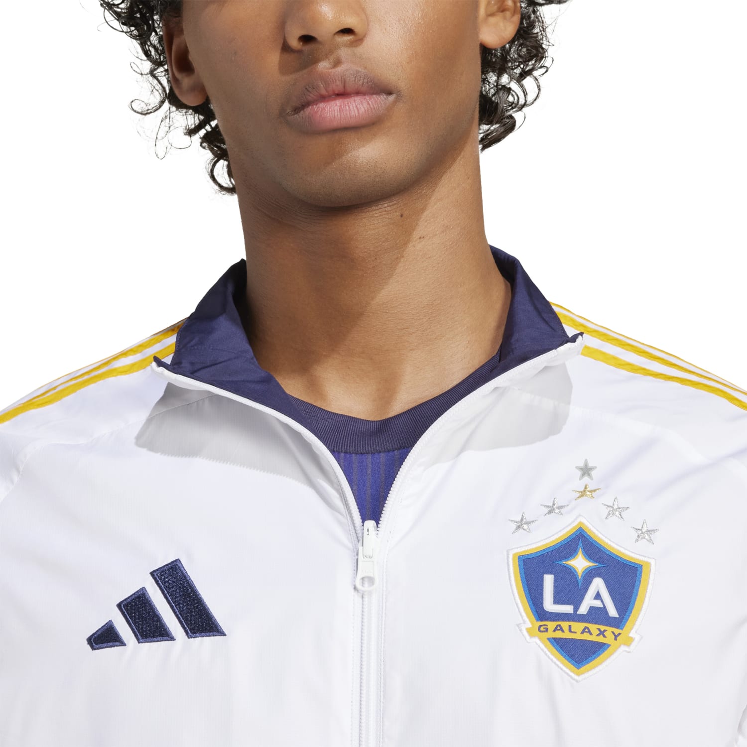 Look fresh and clean at all times with the adidas Galaxy Anthem Men's Jacket. The vibrant white color paired with the bold Galaxy emblem will quickly make you want to make this your staple hoodie for the season. Plus, its zip-up closure makes it easy to take on and off as needed, such as on days when the weather is unpredictable.