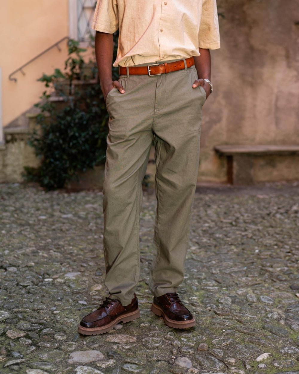Et par army grønne hørbukser, som passer perfekt til din garderobe.