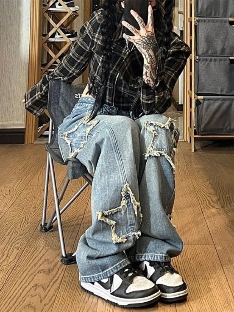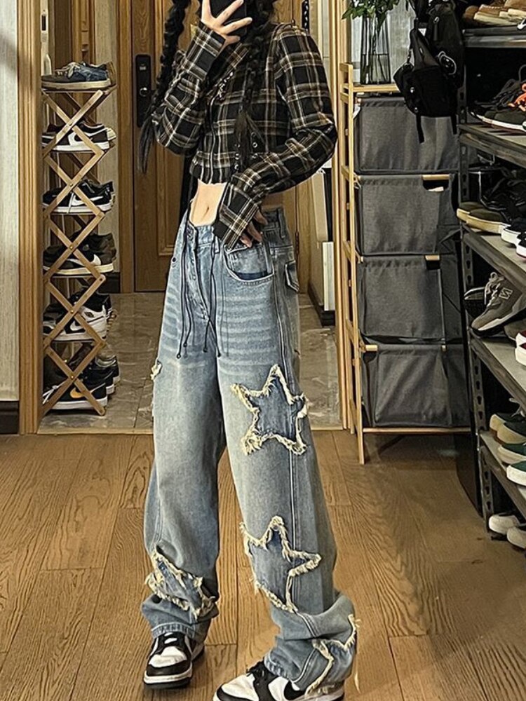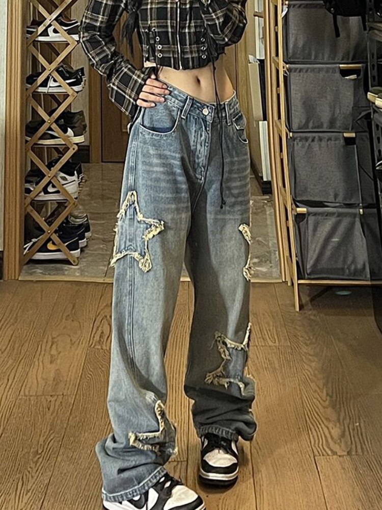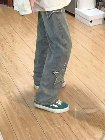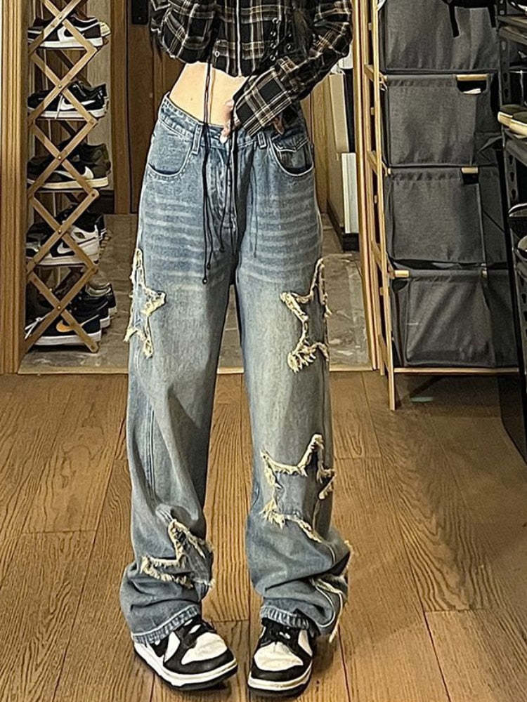 Vintage High Street Star Embroidery Denim Jeans