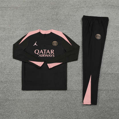 The Paris Saint-Germain Black and Pink Tracksuit delivers a bold, fashion-forward look with a striking modern contrast. Crafted from lightweight, breathable fabric, it ensures all-day comfort for both training and casual wear. The sleek black base is energized with vibrant pink accents for a fresh, standout style. With a tailored fit and durable finish, this tracksuit is built for performance and street-ready appeal.