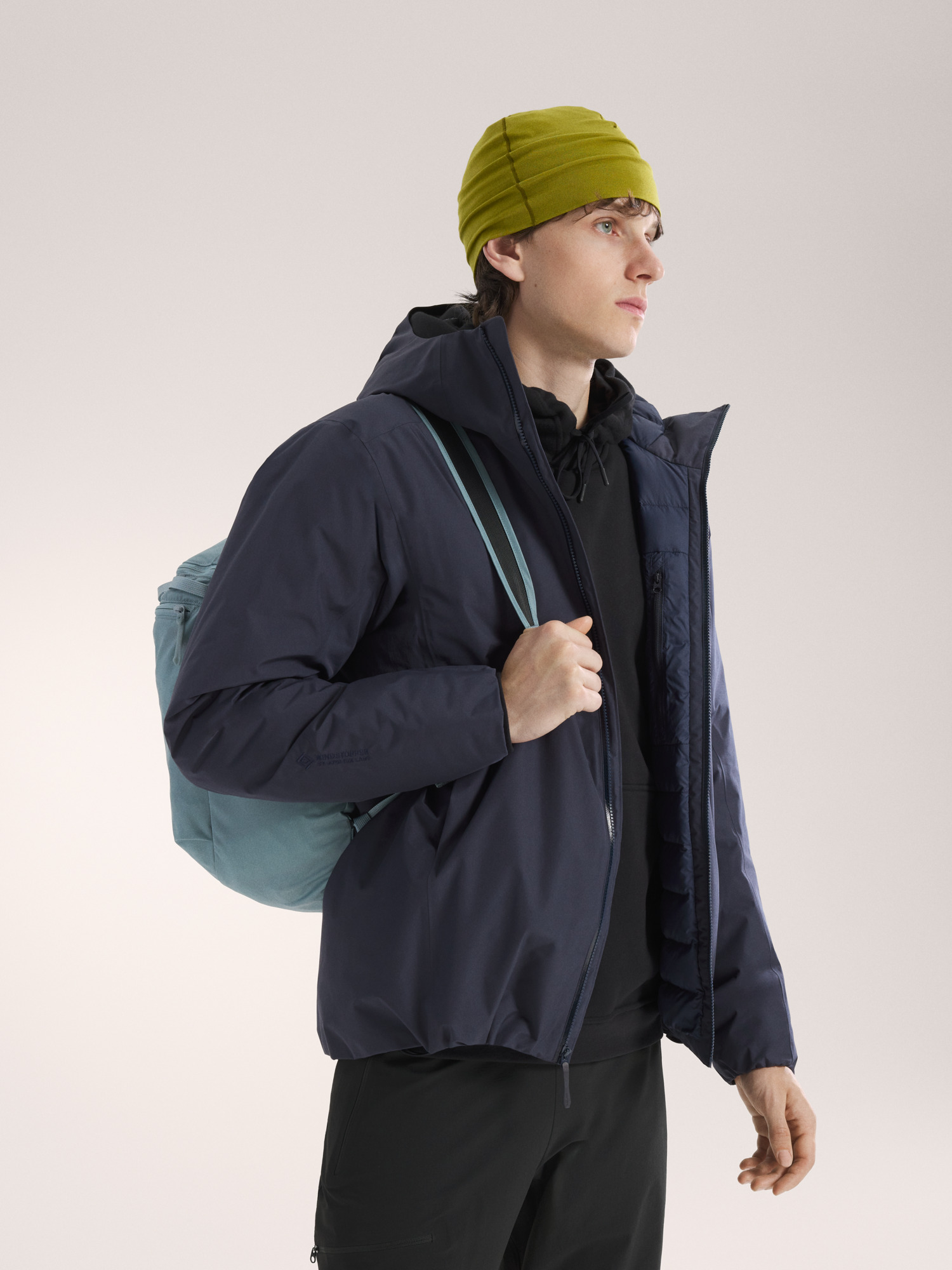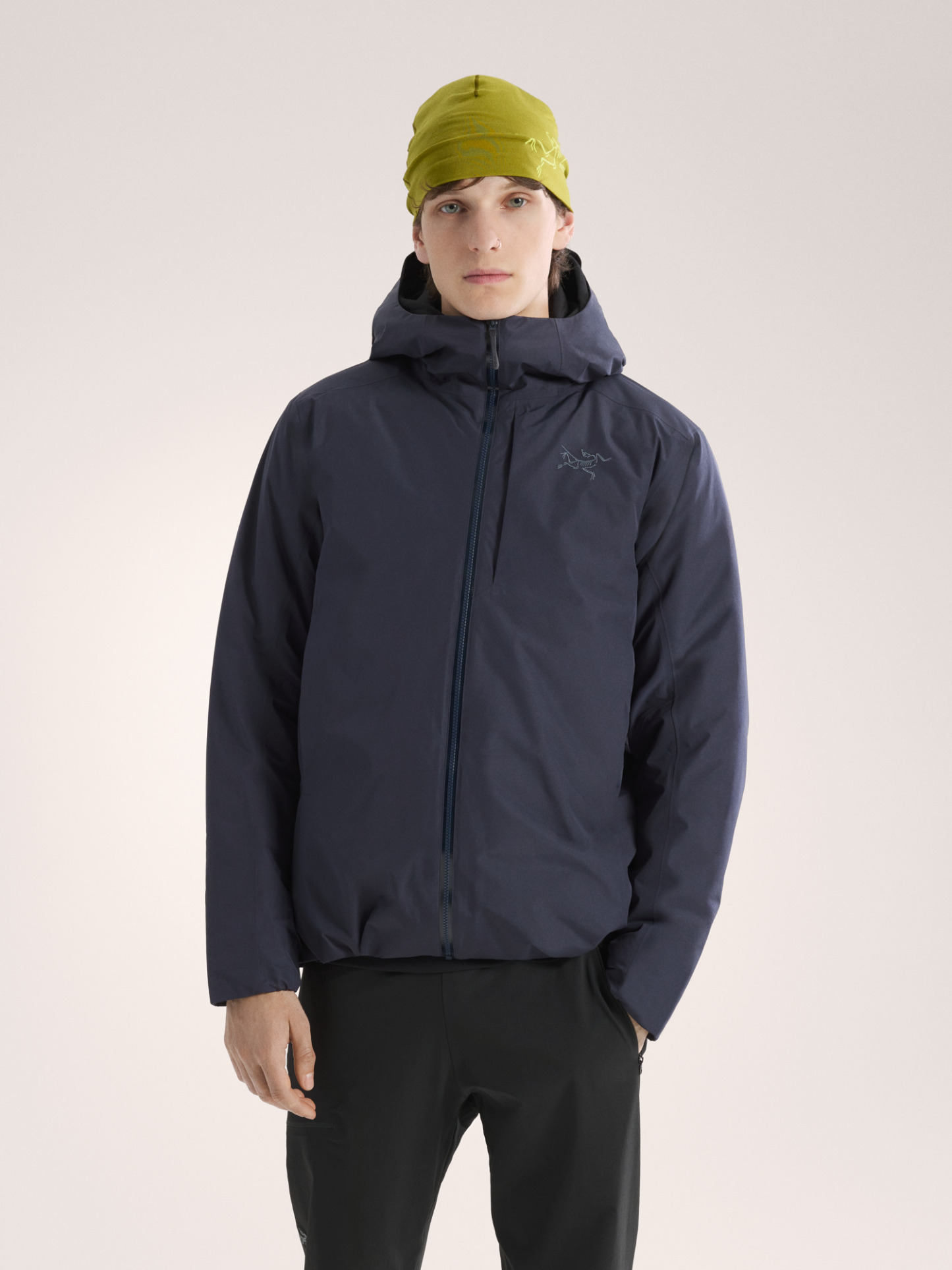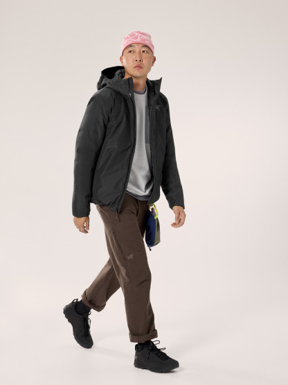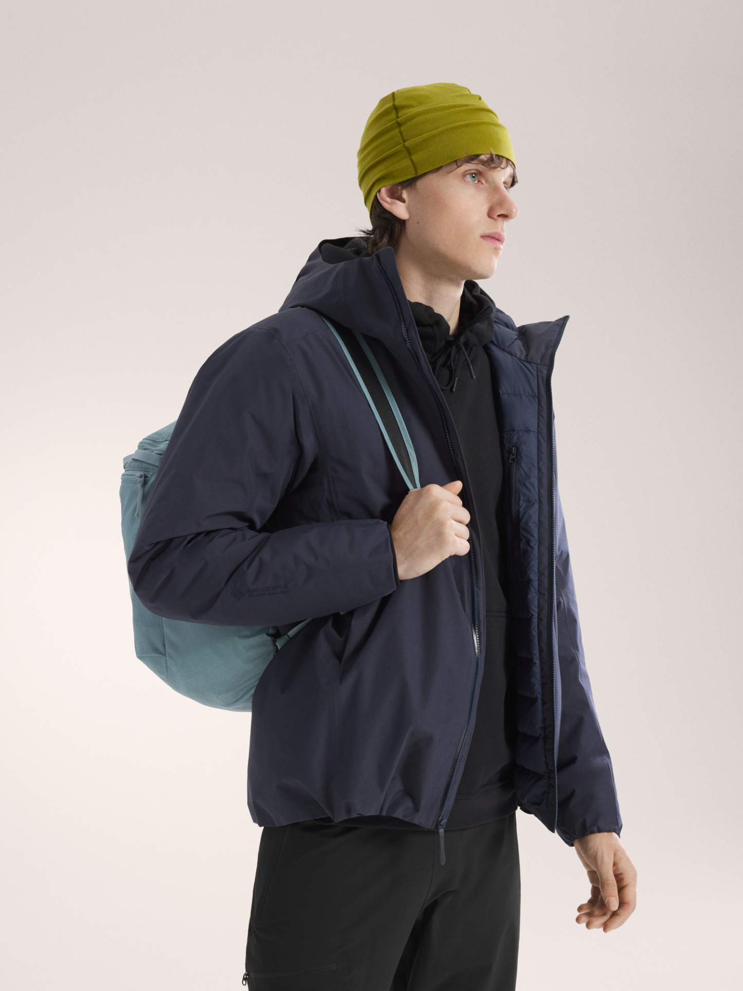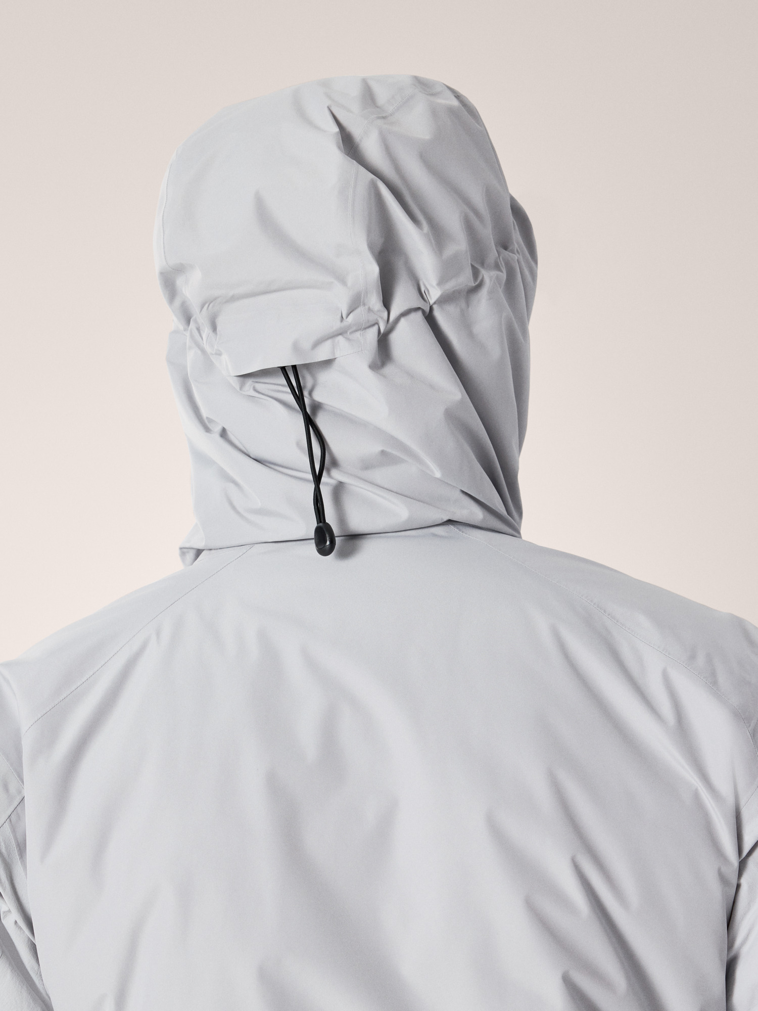 Cold, wind, some light flurries. The Solano Down Hoody gives you the warmth and weather resistance to enjoy a day outside. PFAS-free GORE-TEX sheds weather at the body and sleeves, while a lightweight stretch softshell adds ventilation at the lower back and under the arms. 750-fill power grey goose down provides core warmth, while Coreloft™ synthetic insulation under the softshell panels adds breathability. An insulated hood extends warmth and protection.