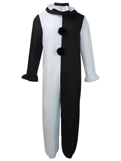 The soft inner lining ensures you remain comfortable throughout your Halloween adventures. The buttoned closure adds an authentic, vintage touch to the outfit while making it easy to slip on and off. Designed with a round collar and elastic cuffs, this costume pays close attention to Art the Clown’s creepy, unsettling look.