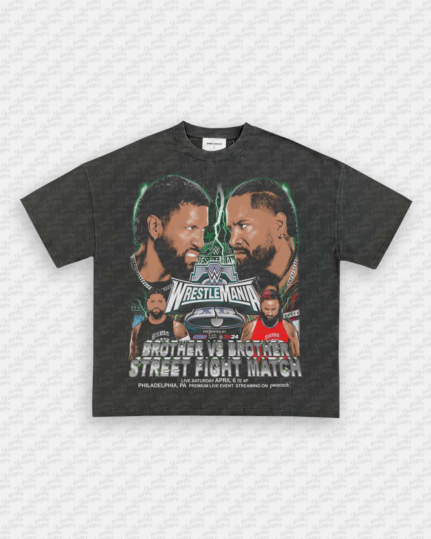 - Distressed print for aged look