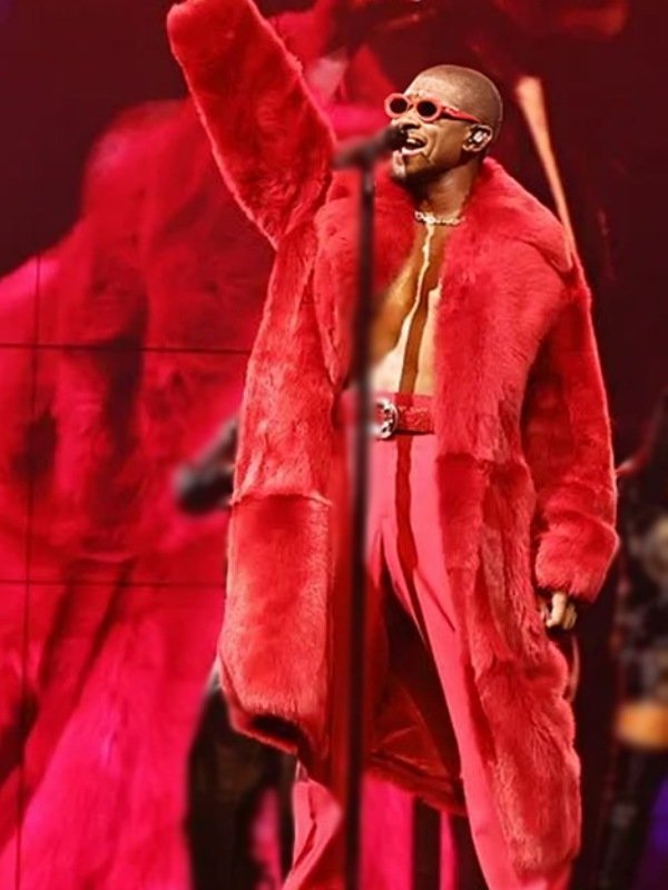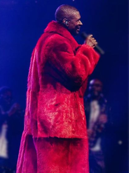 American Singer Usher Past Present Future Tour 2024 Red Faux Fur Coat