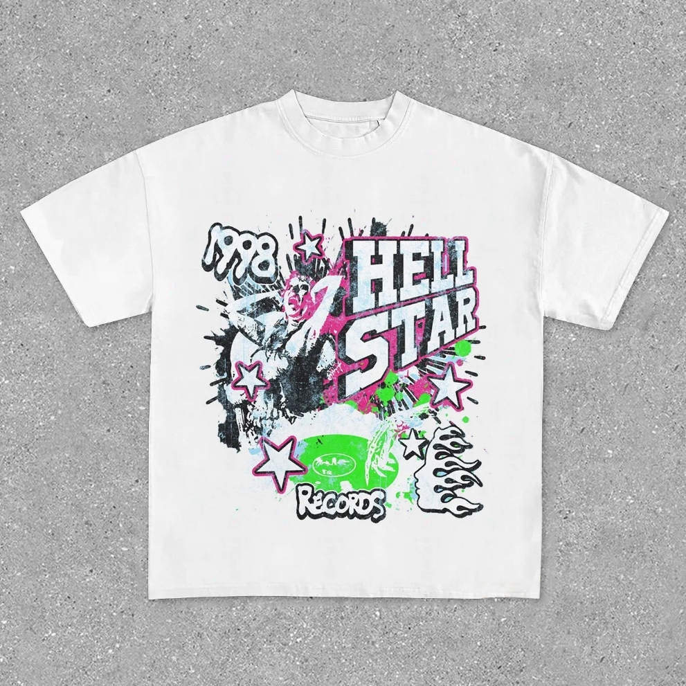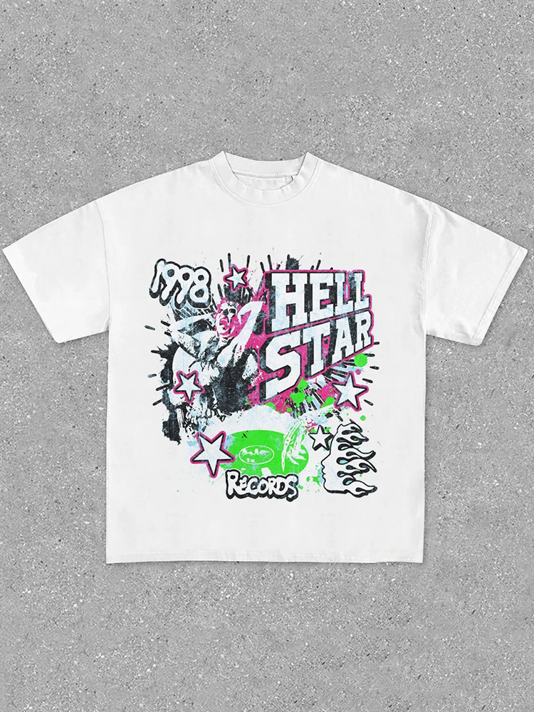 Vintage Hellstar Graffiti Print Casual Cotton Short Sleeve T-Shirt