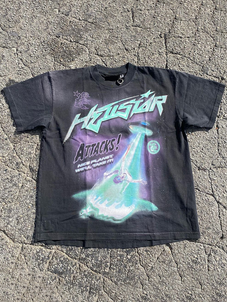 Vintage Hellstar Studios Attacks High Street Print Casual Cotton Short Sleeve T-Shirt